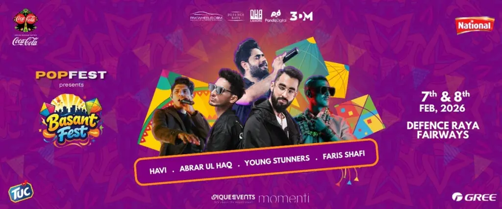 Basant Fest 2026 at Defence Raya Fairways, Lahore is set to be one of the city’s biggest two-day Basant celebrations, combining kite flying, live concerts, food streets and cultural activities on 7–8 February 2026. The star lineup features Havi and Faris Shafi on Day 1, followed by Abrar Ul Haq and Young Stunners on Day 2, with concerts starting nightly at 8 PM. The festival runs from afternoon till late, offering over 100 stalls, shopping zones, kids’ areas, kite-making stations, live competitions, theatre shows, photo installations and interactive games across the venue. Ticket options include Standard Pass (PKR 3,000/day), Couple Pass, Group Pass, and a premium Rooftop Access Pass (PKR 10,000) with snacks, seating and exclusive views, making Basant Fest Lahore 2026 a must-visit event for families, youth, food lovers and content creators seeking true festival vibes.