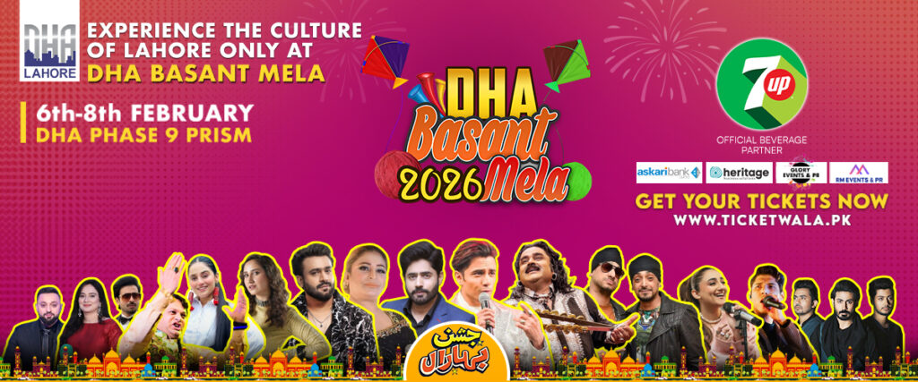 The DHA Basant Mela 2026 is set to light up Phase 9 Prism, DHA Lahore from 6–8 February 2026, offering three days of kite flying, food festivals, family entertainment and major live concerts in one of the city’s biggest Basant celebrations. The star-studded lineup includes Ali Zafar, Abrar Ul Haq, Arif Lohar, Sahir Ali Bagga, Havi, Sahara UK, Nimra Mehra, Naseebo Lal, Sehar Gul Khan, Raga Boys and Ukasha Gul, with a grand fireworks finale on Day 3. Visitors can enjoy kite zones, a large food arena, kids’ areas, gaming zones and magic shows, while families, couples and females are welcome, children under five enter free, parking and wheelchair access are available, seating is limited, and outside food, drinks, kites or strings are not allowed.
